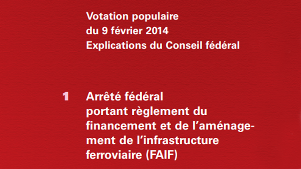 Le programme « RAIL 2000 » a donné un nouvel essor au transport ferroviaire en Suisse. Les améliorations qui en ont résulté ont contribué à une croissance marquée de la demande, ce qui a entraîné de nouveaux goulets d’étranglement et une forte sollicitation de l’infrastructure. Il a donc fallu trouver de nouvelles solutions pour perfectionner notre réseau ferroviaire et l’exploiter en toute sécurité. La réponse de la Confédération à ce défi a été le projet FAIF, que le peuple a accepté le 9 février 2014 avec 62 % de « oui ».