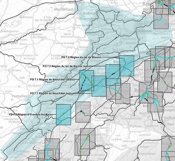 La partie d’objets du plan sectoriel des transports, partie Infrastructure rail comprend les fiches d’objets détaillées et classées par territoires d’action. La partie d’objets présente les projets territoriaux concrets.