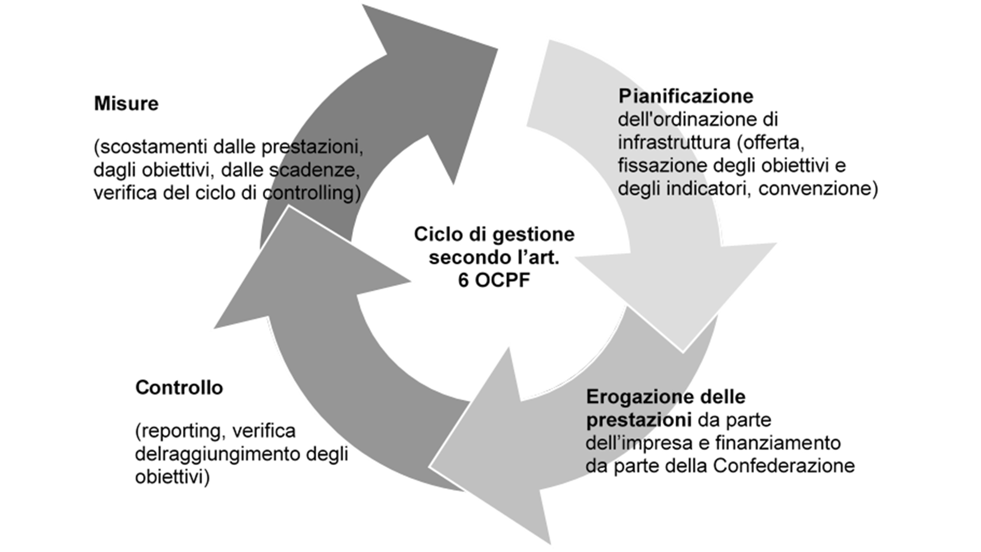 La Confederazione gestisce l’esercizio e il mantenimento della qualità dell'infrastruttura ferroviaria attraverso l’indicazione di obiettivi e di indici derivati da questi ultimi. Inoltre, richiede la presentazione di rapporti sul raggiungimento di tali obiettivi.