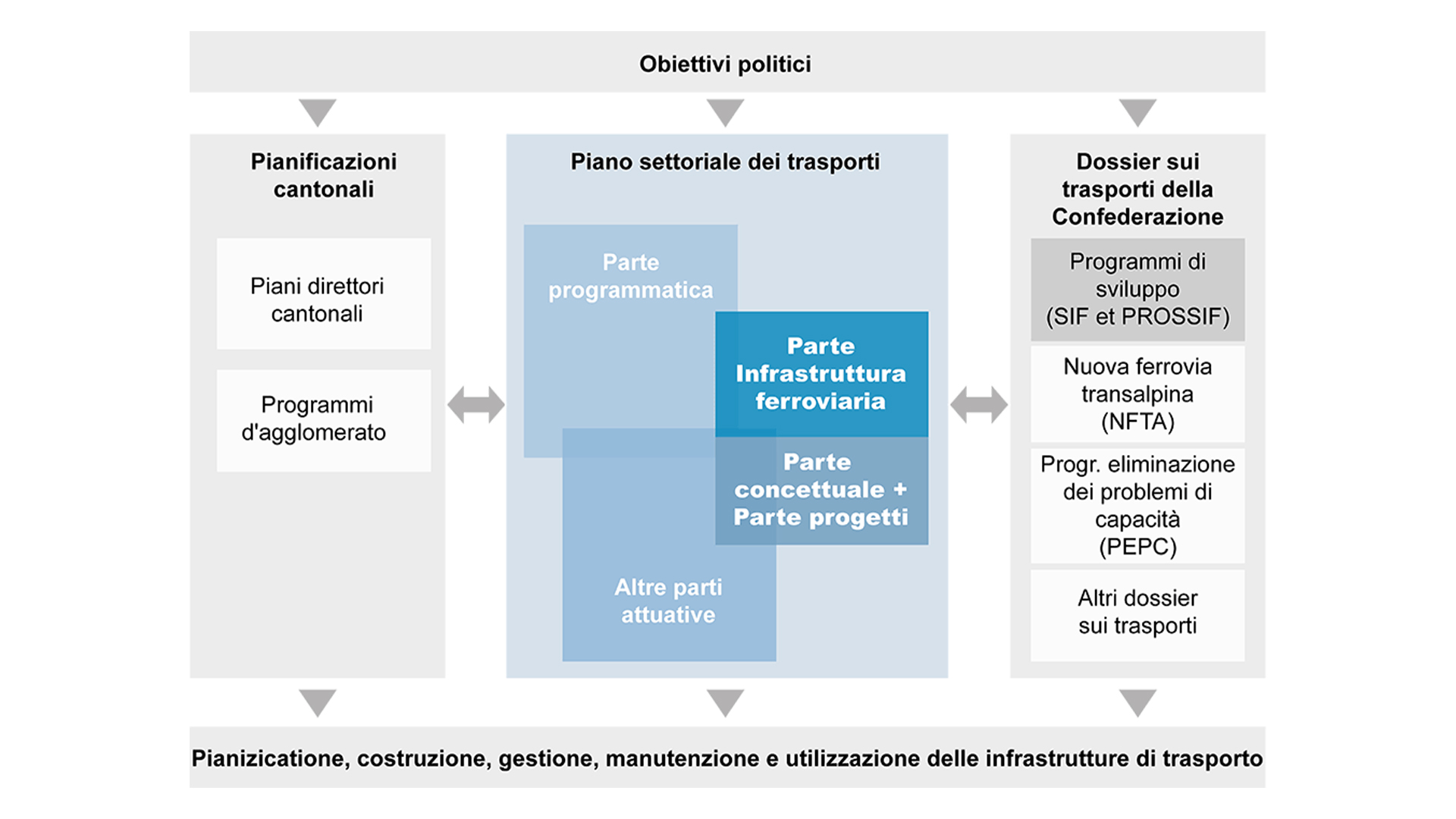 La parte concettuale del Piano settoriale dei trasporti, parte Infrastruttura ferroviaria, definisce le linee direttrici per la pianificazione dell'infrastruttura ferroviaria e informa sui progetti per l'ulteriore sviluppo dell'infrastruttura ferroviaria.